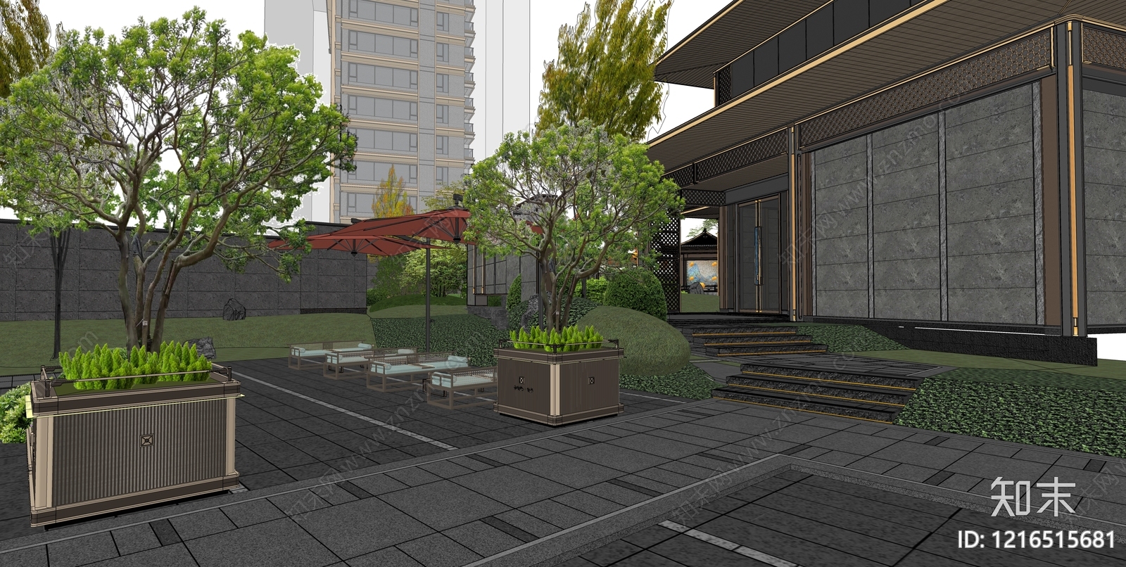 - 新中式小区景观 展示区 售楼处