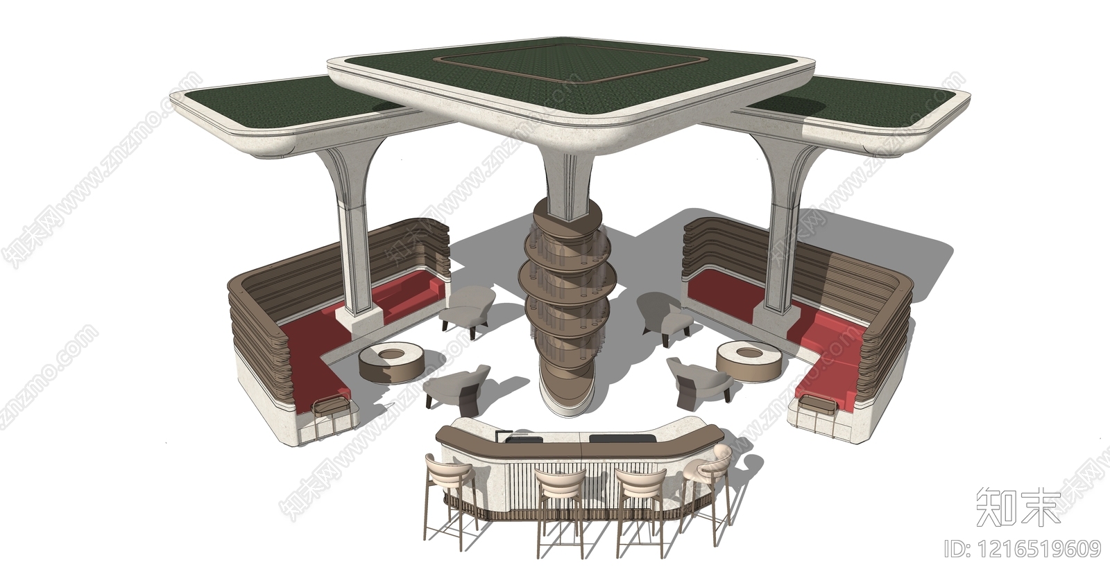 - 未来主义廊架 海派轻奢廊架吧台 异形构筑卡座 景观会客厅弧形顶 创意户外家具