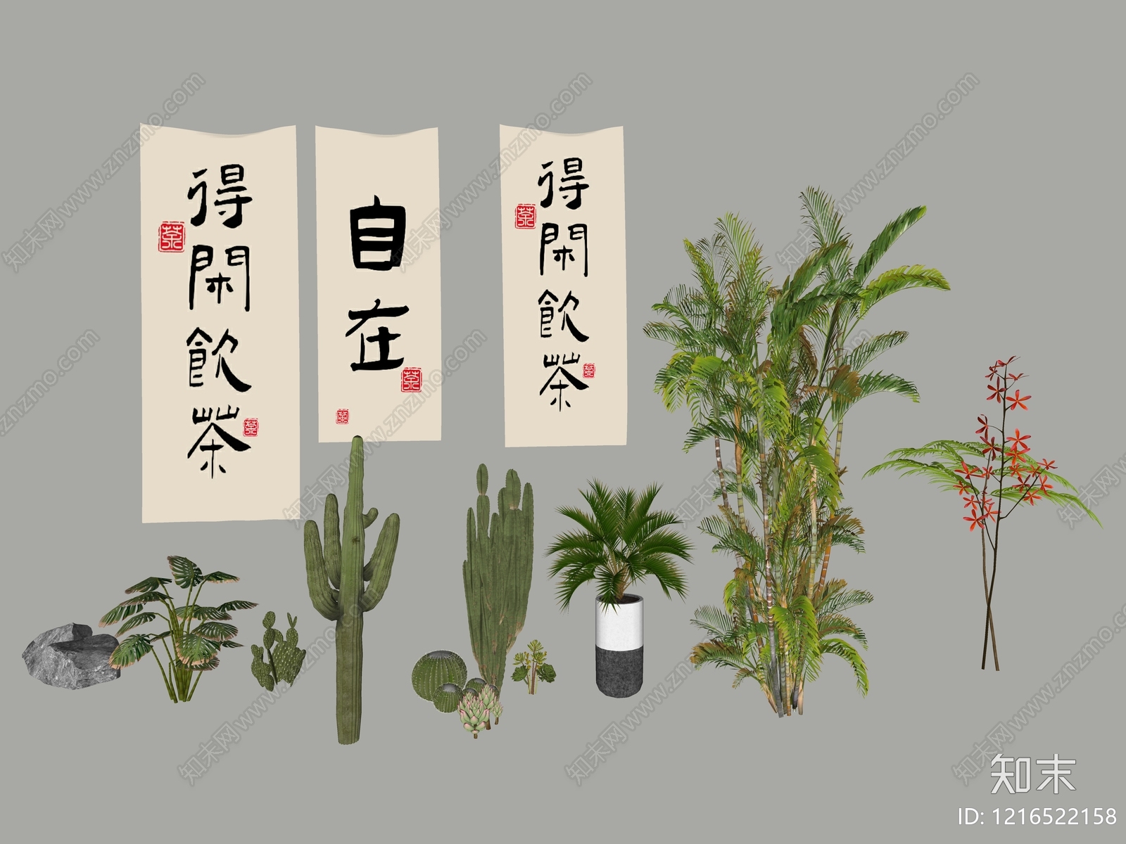 新中式植物组合 植物组合 摆盆 茶馆 氛围 仙人掌