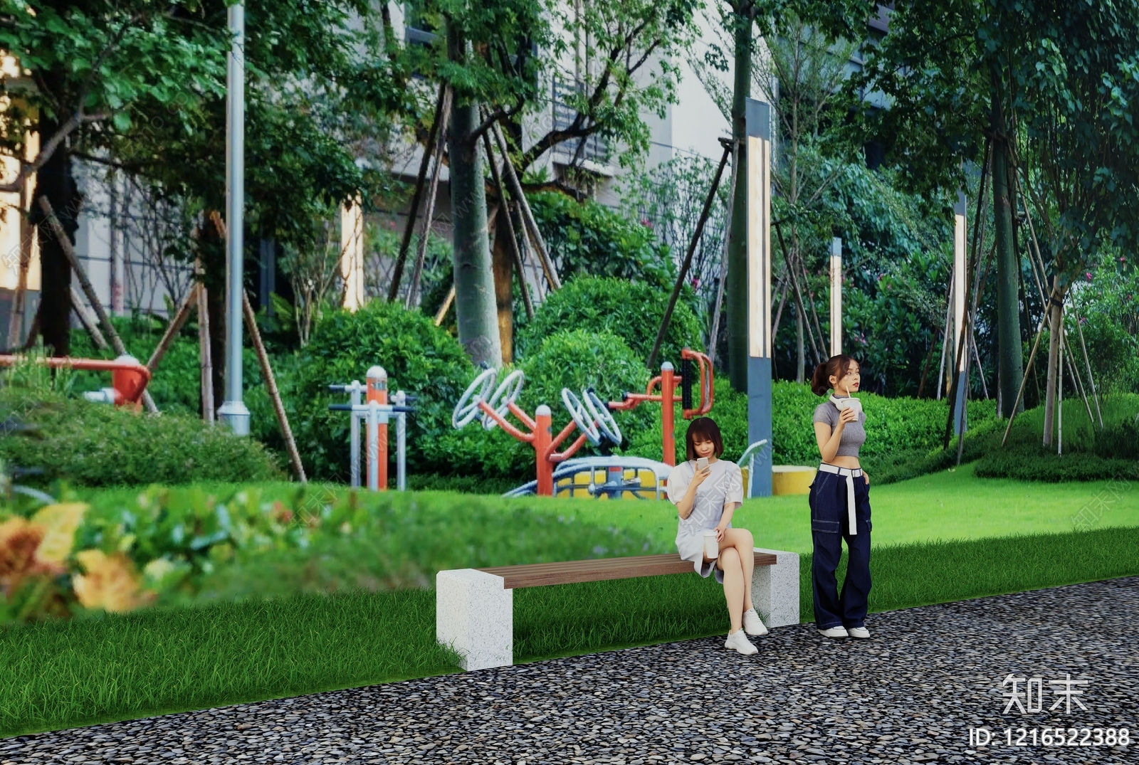 - 现代简约小区景观 登高场地 登高面 健身活动区 儿童健身 消防场地儿童区