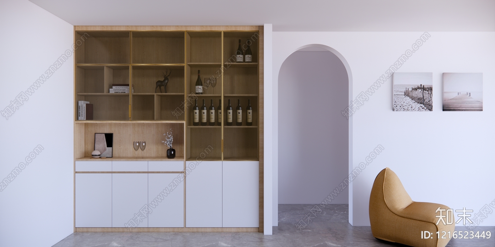 现代简约家居客厅 酒柜 长虹玻璃门 沙发 饰品 原木风