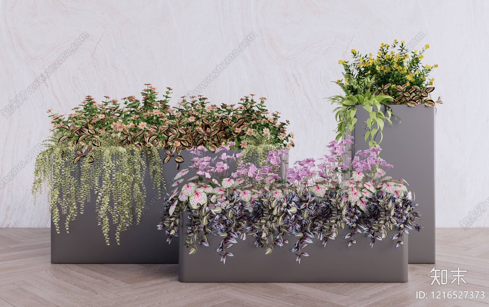 - 现代简约植物组合 景观植物盆栽盆景 花箱花卉花镜花钵 灌木花草组合 庭院植物景观 悬挂垂吊植物