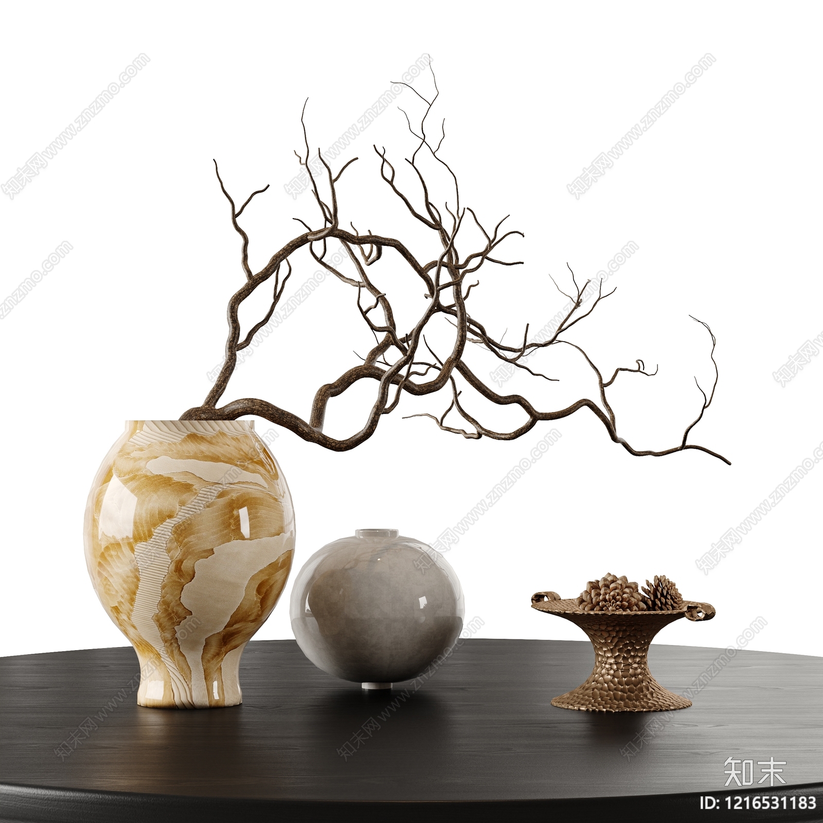 - 新中式摆件组合 干枝 花瓶 瓷瓶