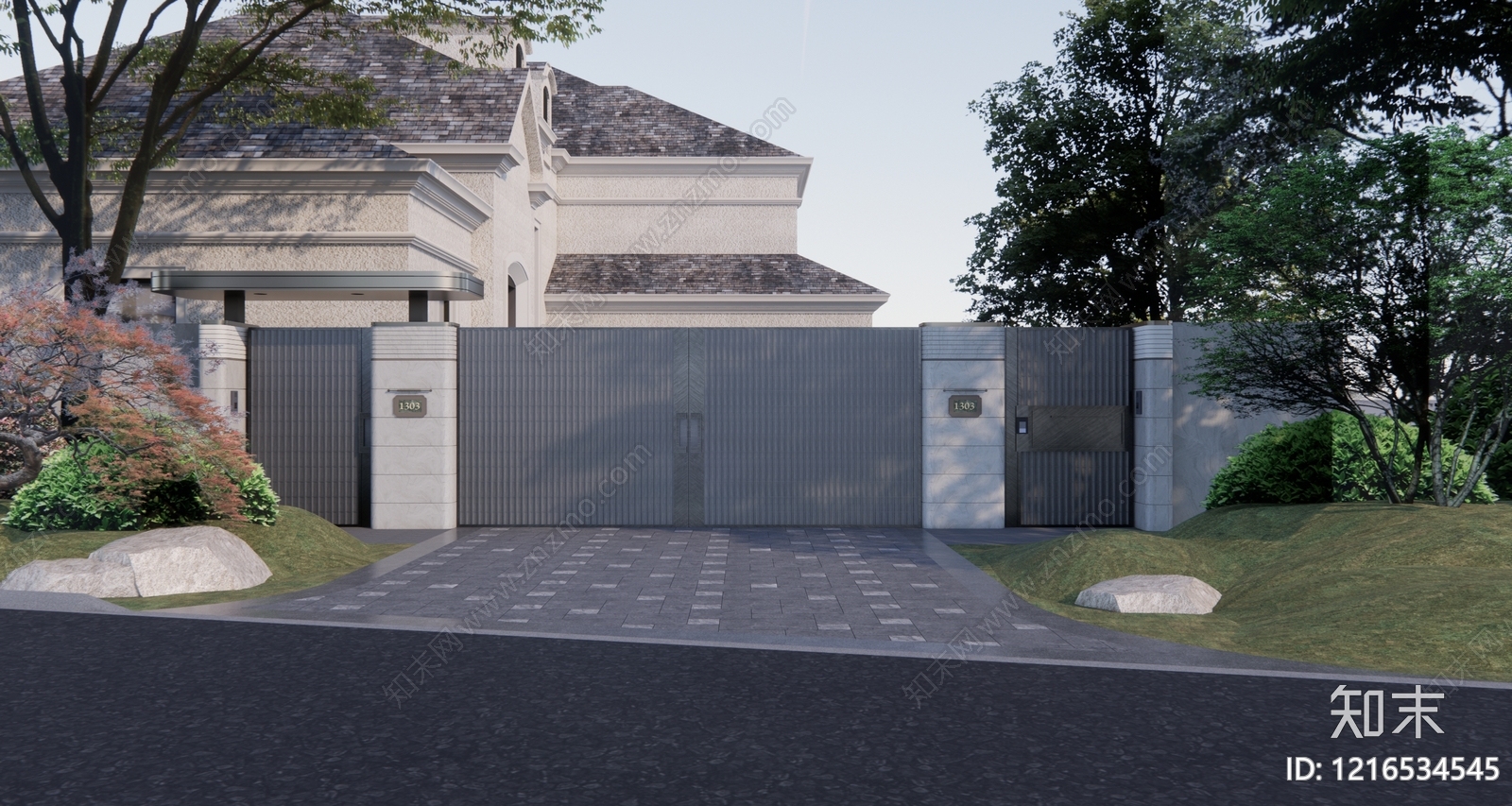 - 现代简约入口大门 轻奢别墅 别墅入口 大门 铁艺门 庭院景观