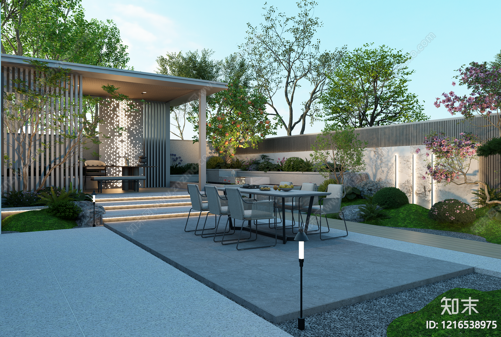 - 新中式别墅庭院 庭院 别墅 花园