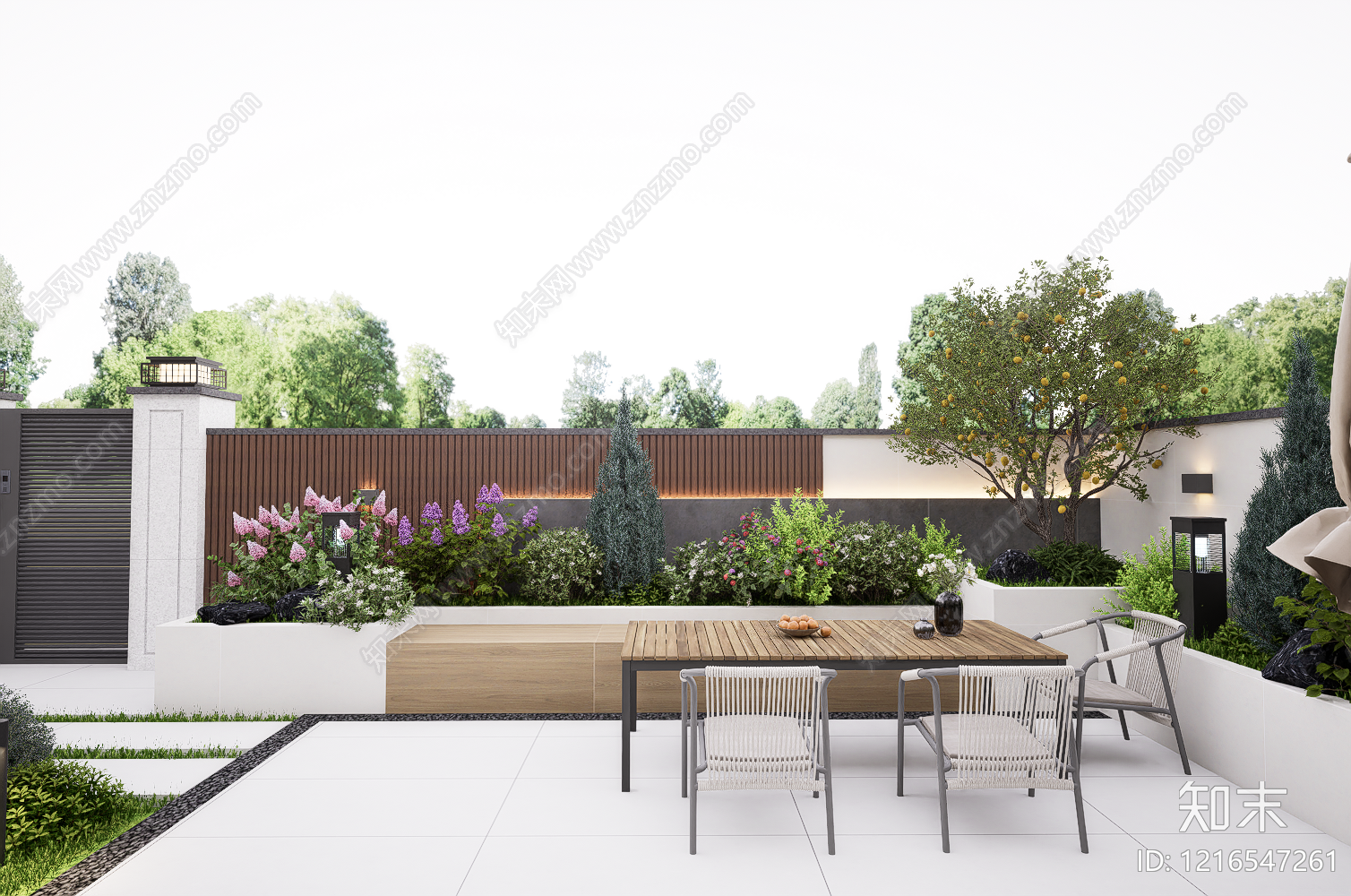 - 现代简约别墅庭院 现代庭院 小面积院子