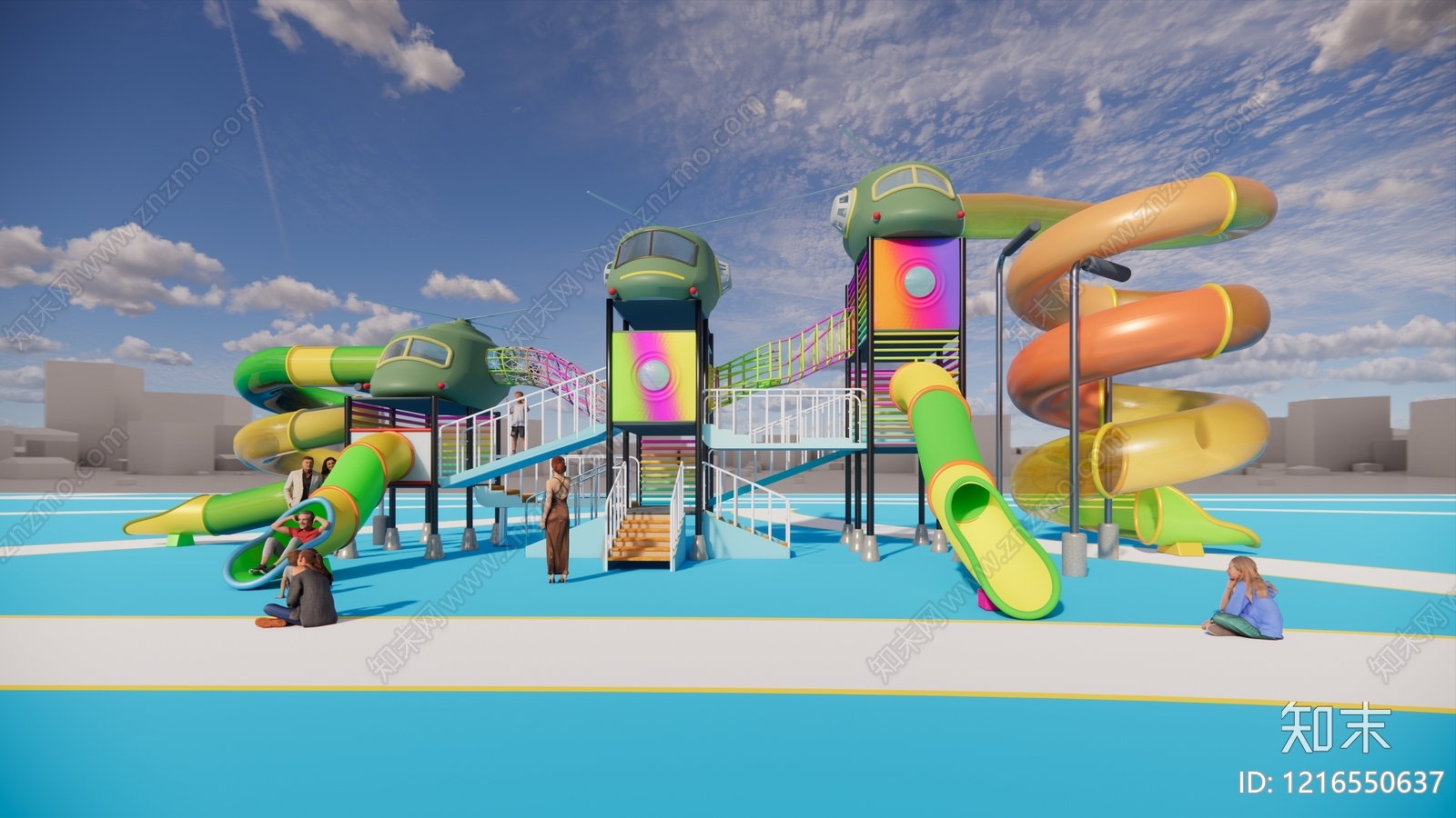 - 现代童趣风格儿童游乐空间 儿童 游乐设施 滑梯 材质 贴图