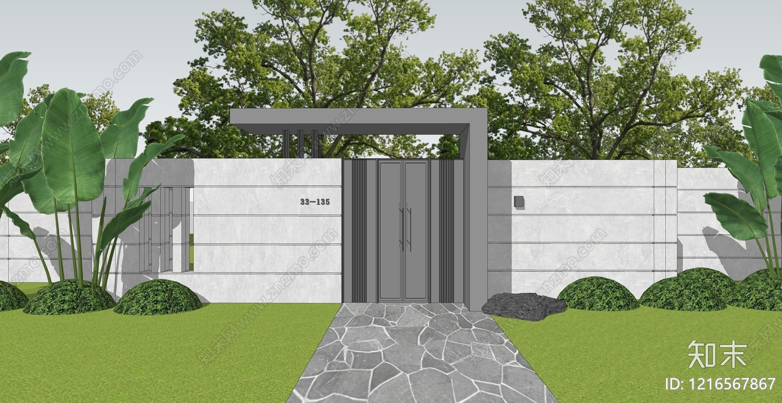 - 现代简约入口大门 庭院大门 现代大门 景观大门
