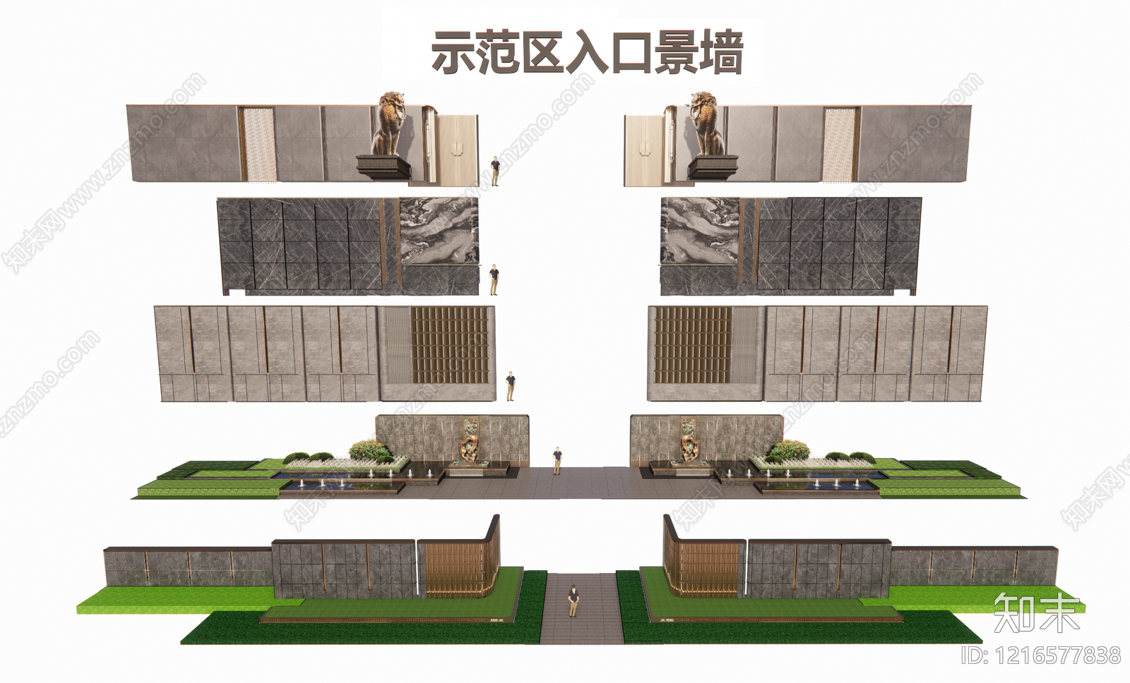 - 新中式景墙 示范区入口景墙 对称景墙 示范区前场景墙 轻奢景墙 入口两侧景墙