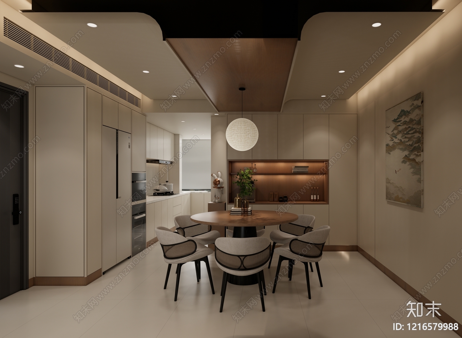 现代客餐厅 开放式厨房客餐厅 客餐厅 餐厨一体化 弧形吊顶无主灯 治愈风