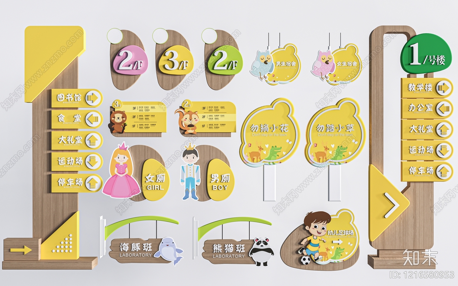 童趣风标识标牌 校园导视牌 校园标识 校园指示牌 学校门牌