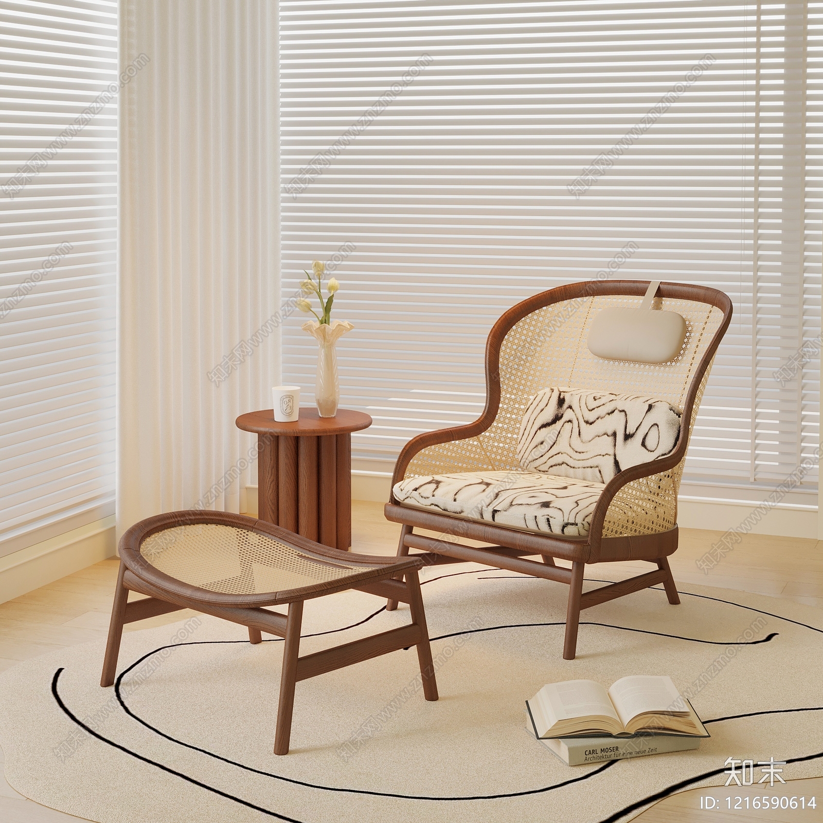 - 侘寂风休闲椅 休闲椅 单椅 躺椅 藤编椅