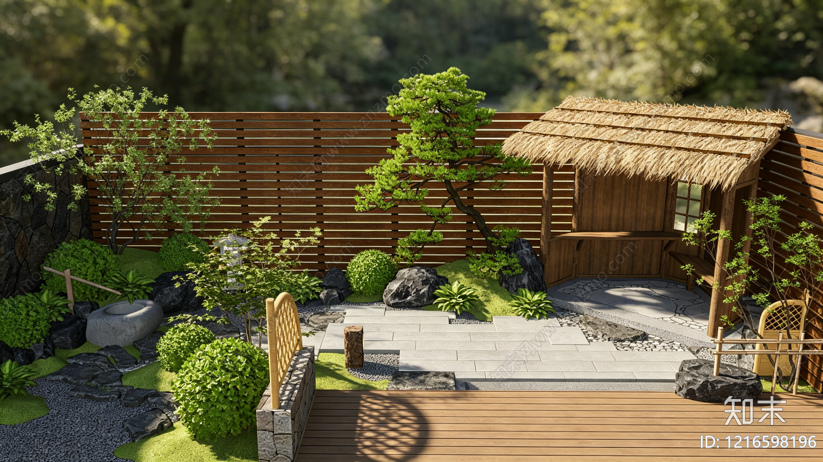 - 日式禅意别墅庭院 日式禅意别墅庭院 日式花园 复古自然 老石板仿古砖