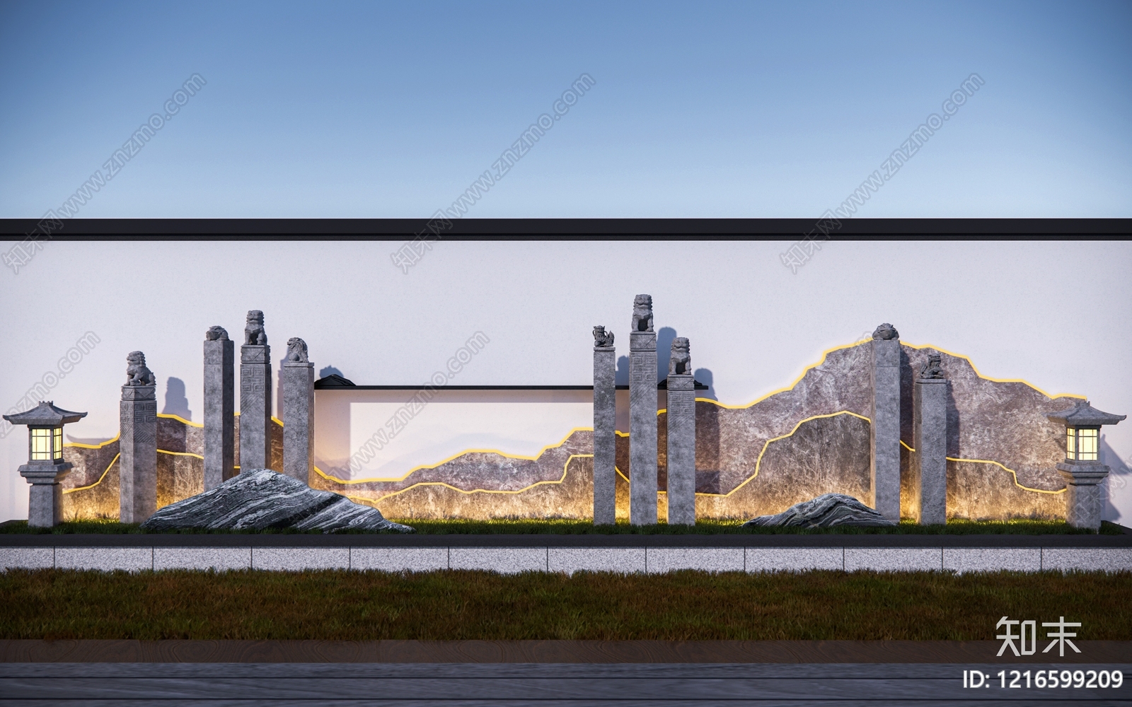 - 新中式景墙 示范区入口景墙 对称景墙 示范区前场景墙 轻奢景墙 入口两侧景墙