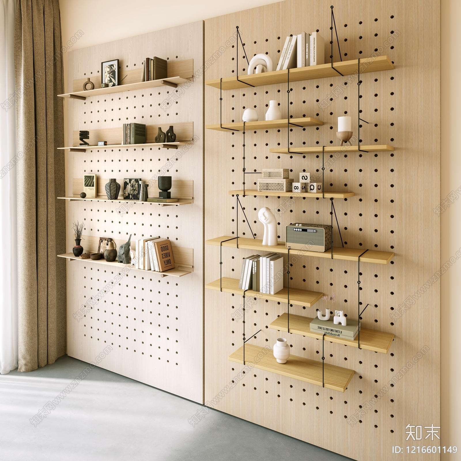 - 原木风书架 现代洞洞板 洞洞板墙饰板 书籍摆件 饰品书本 洞洞板书架