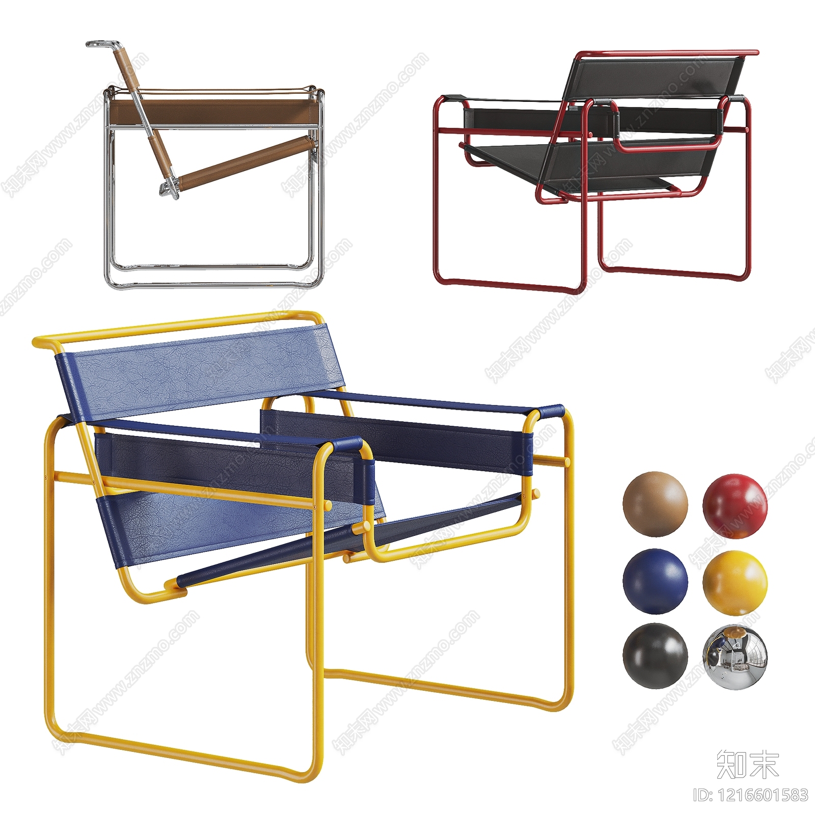 - 现代主义休闲椅 CASSINA Wassily 包豪斯单人沙发 扶手椅休闲椅 皮革钢管不锈钢椅