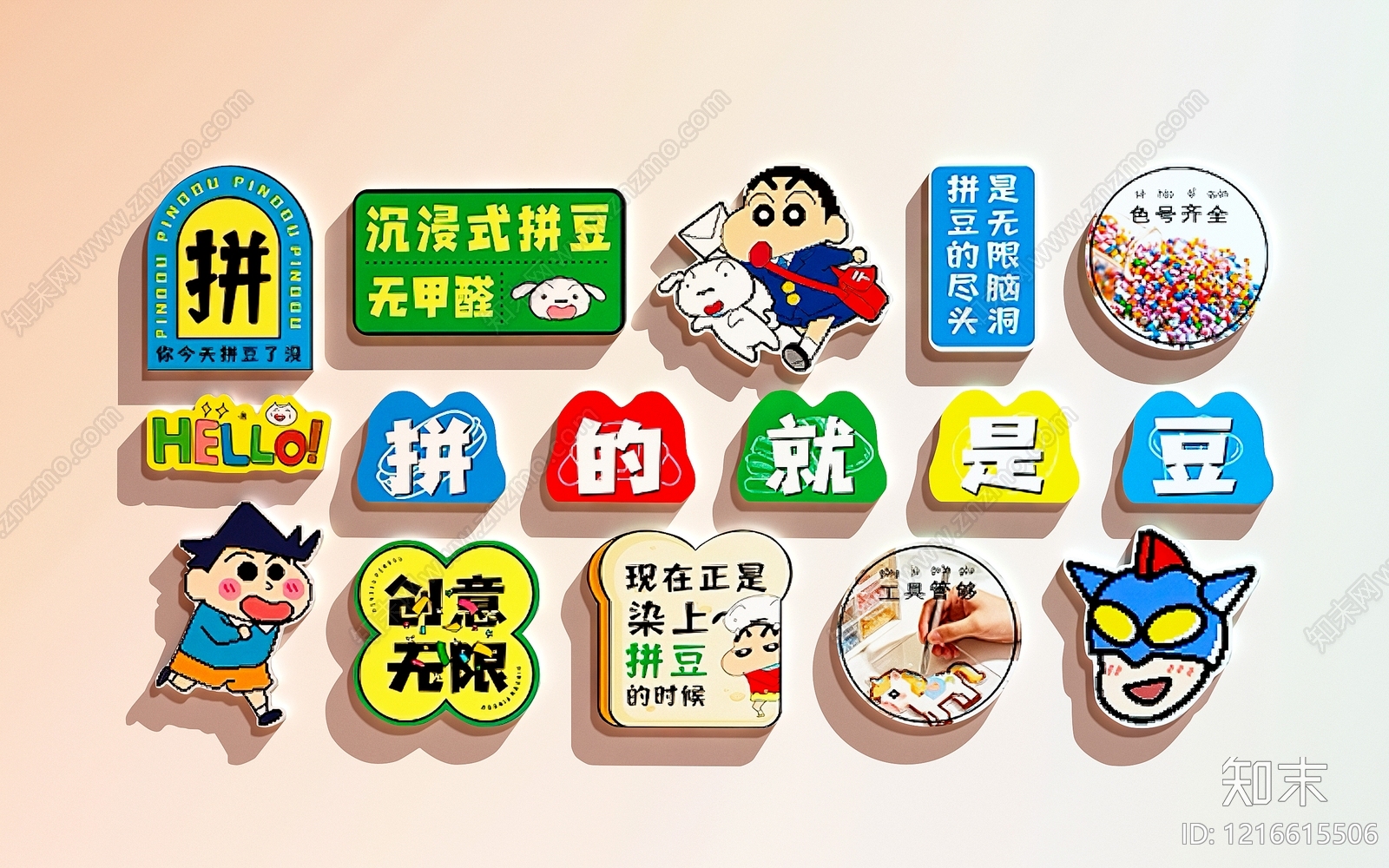 - 卡通风摆件组合 拼豆装饰画 拼豆打卡墙 儿童装饰画