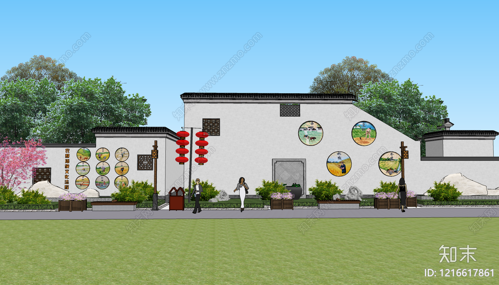 - 新中式景墙 美丽乡村 农耕