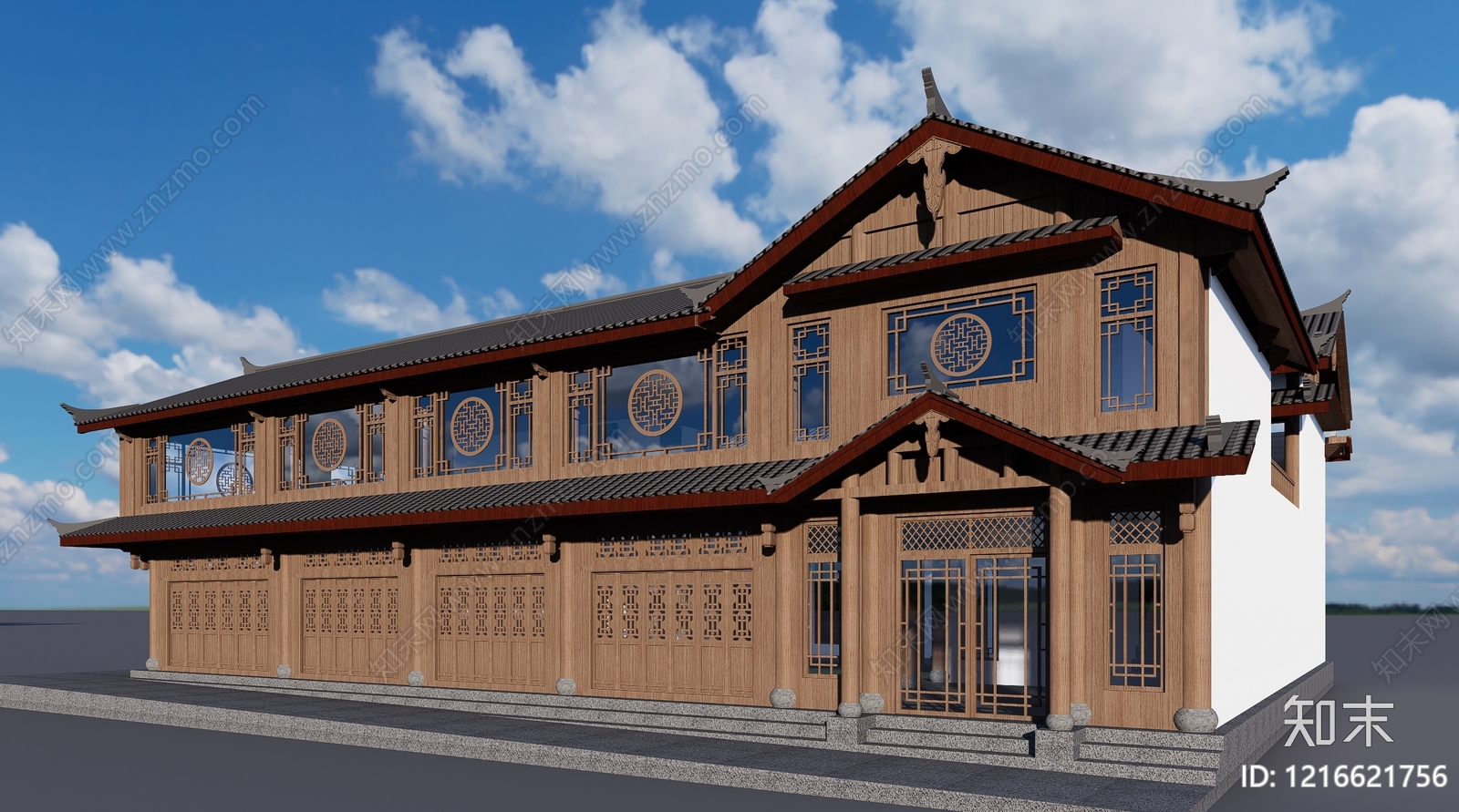 - 新中式民宿建筑 中式建筑 中式花窗