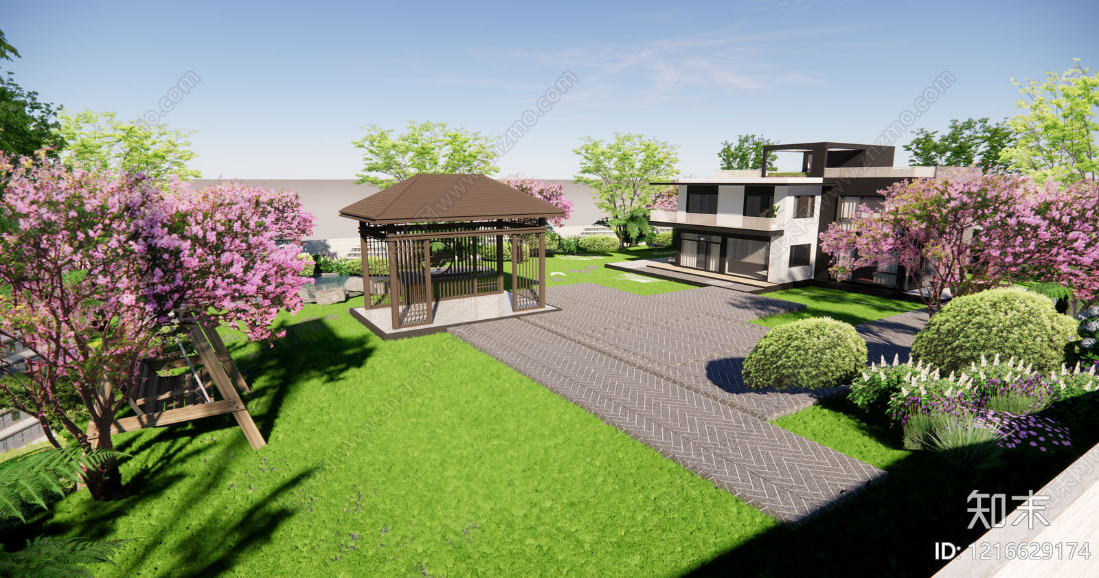 - 新中式别墅庭院 现代庭院 现代景墙 现代亭子 现代水景 现代花园
