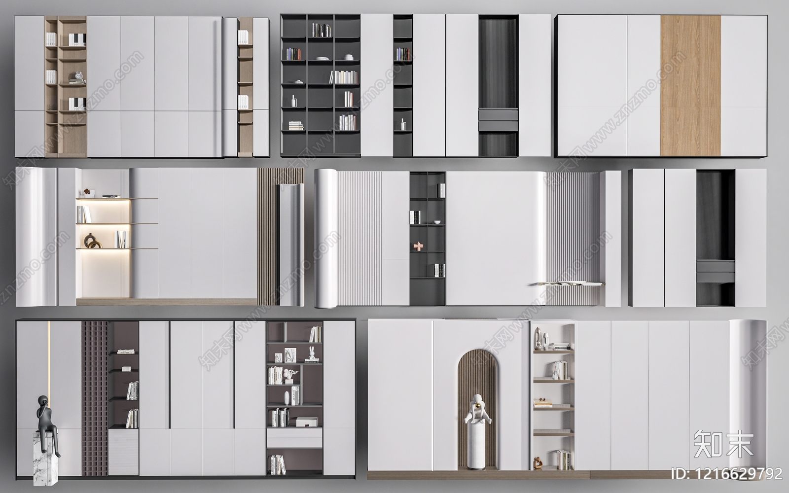 现代书柜 书房书柜 书架 装饰柜 护墙板 定制柜 储物柜