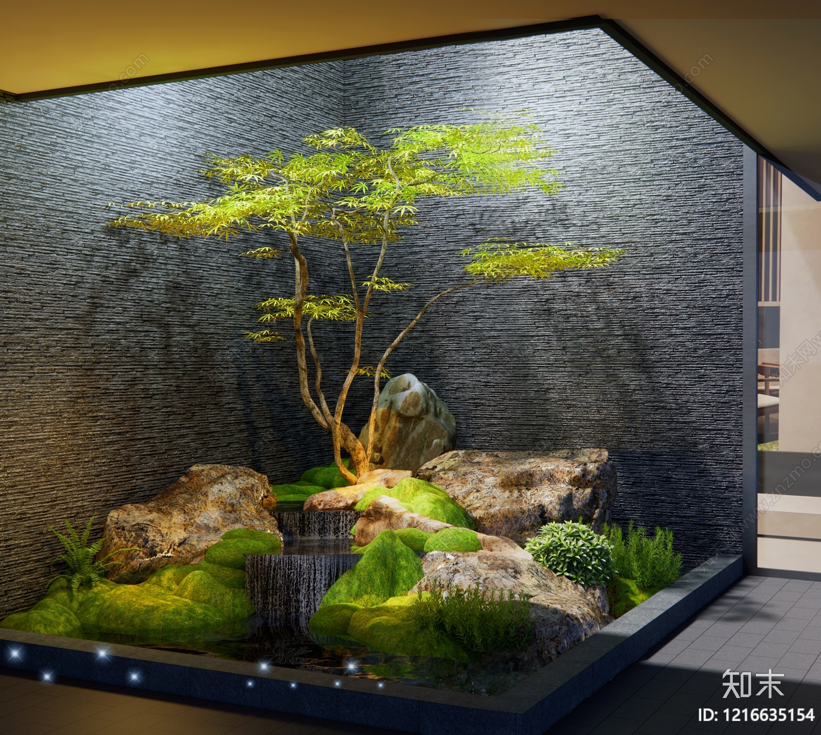 新中式景观室内景观 室内天井景观 石头景观 室内自然石景 天井石头景观