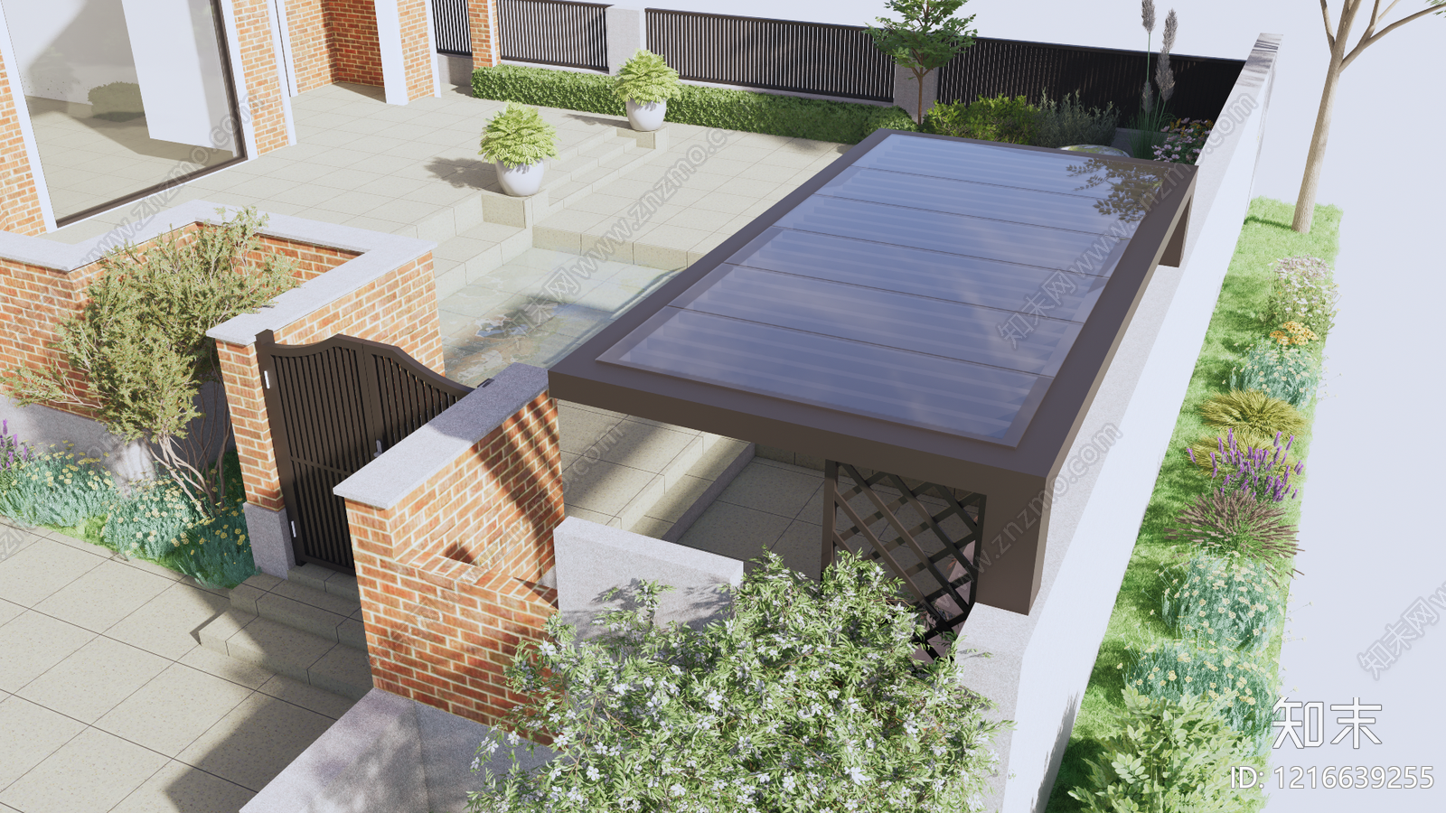 现代简约别墅庭院 设备房 别墅 园艺门 雨棚