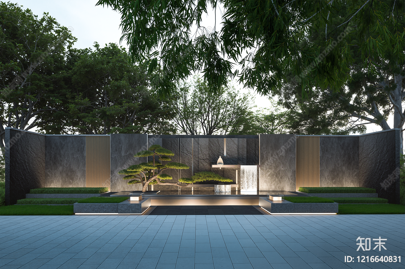 - 新中式景墙 特色大理石景墙