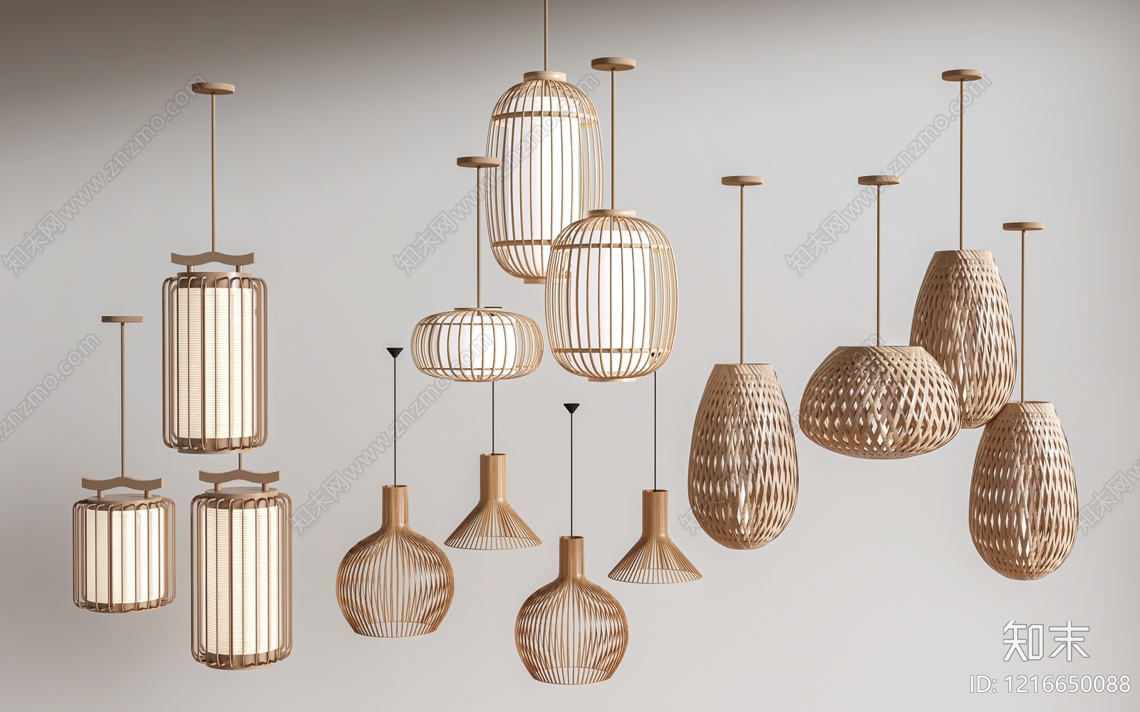 新中式吊灯组合 现代竹编吊灯 艺术吊灯 床头吊灯