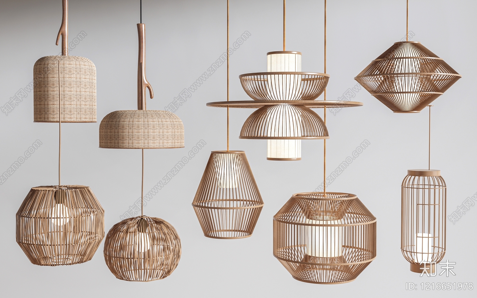 新中式吊灯组合 现代竹编吊灯 艺术吊灯 床头吊灯