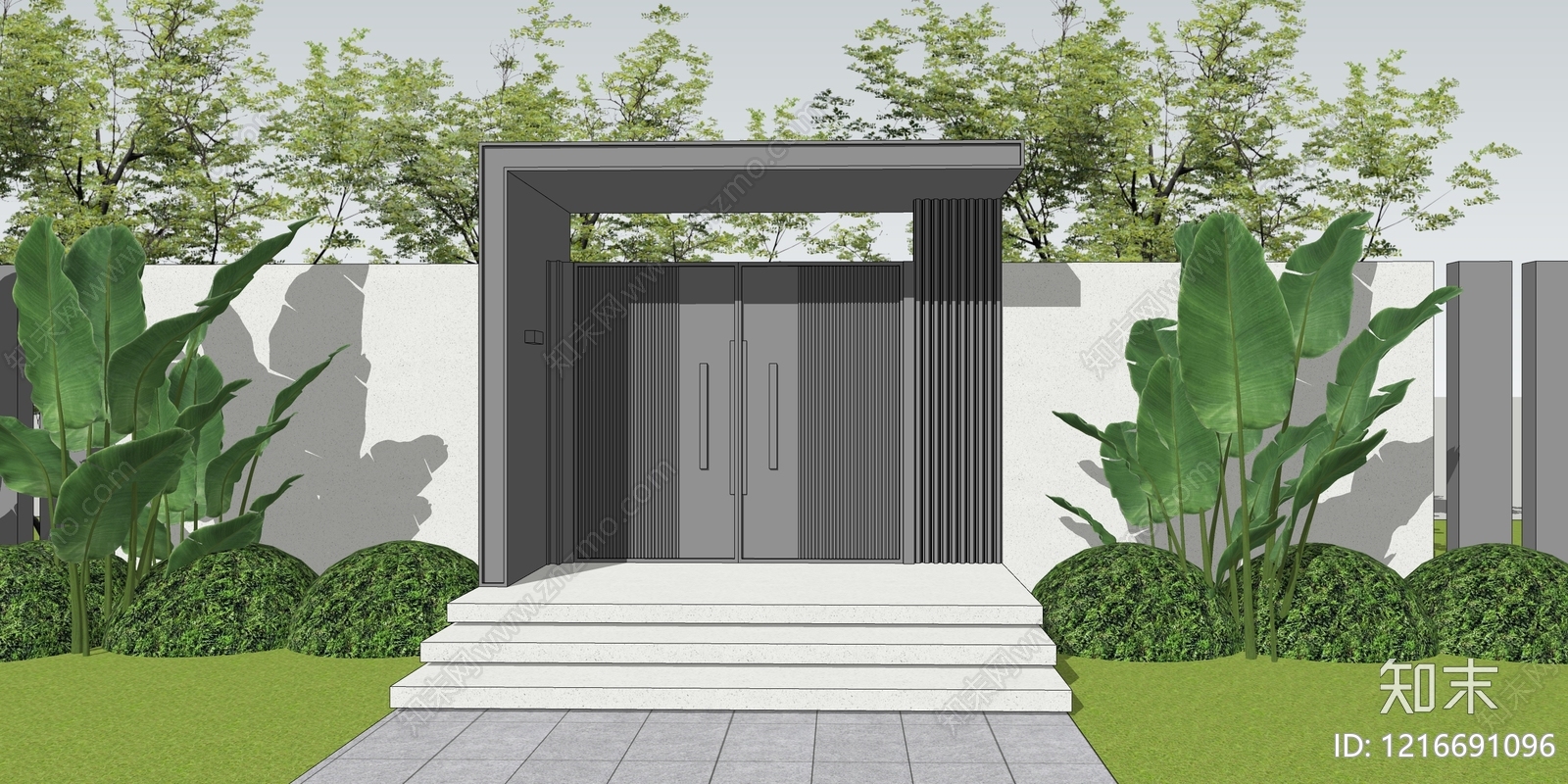 - 现代简约入口大门 现代大门 庭院大门 景观大门