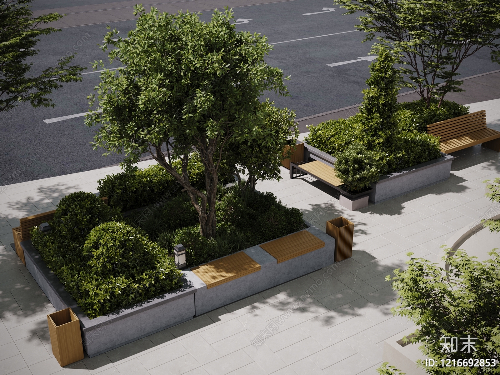 - 现代简约休憩花园 现代户外景观座椅 户外椅 景观植物 树池 花坛座椅