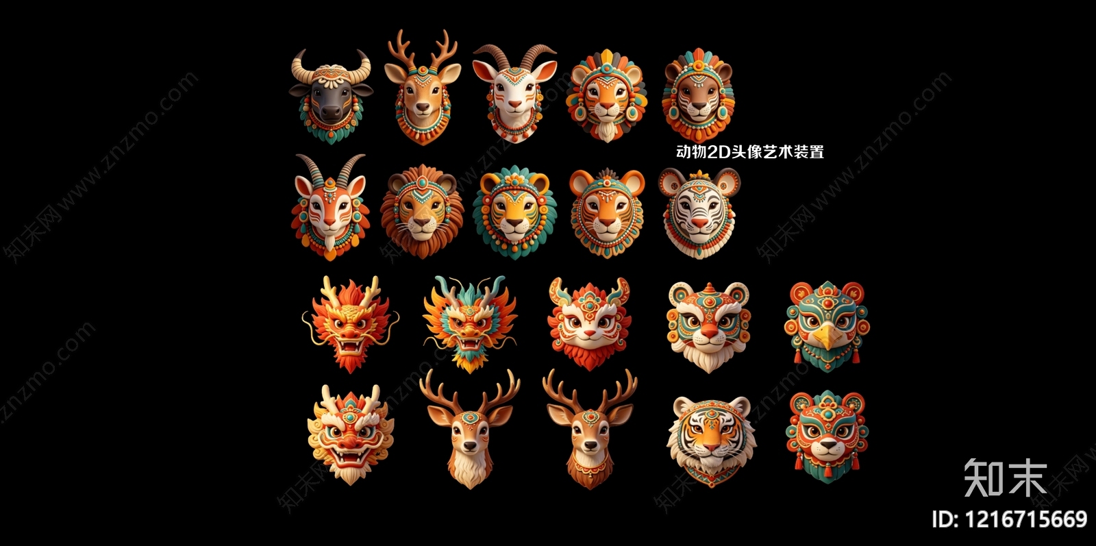 - 部落风IP形象 动物2D头像民族 民族艺术装置