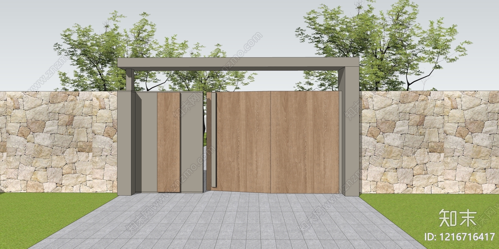 - 现代简约入口大门 现代大门 庭院大门 景观大门