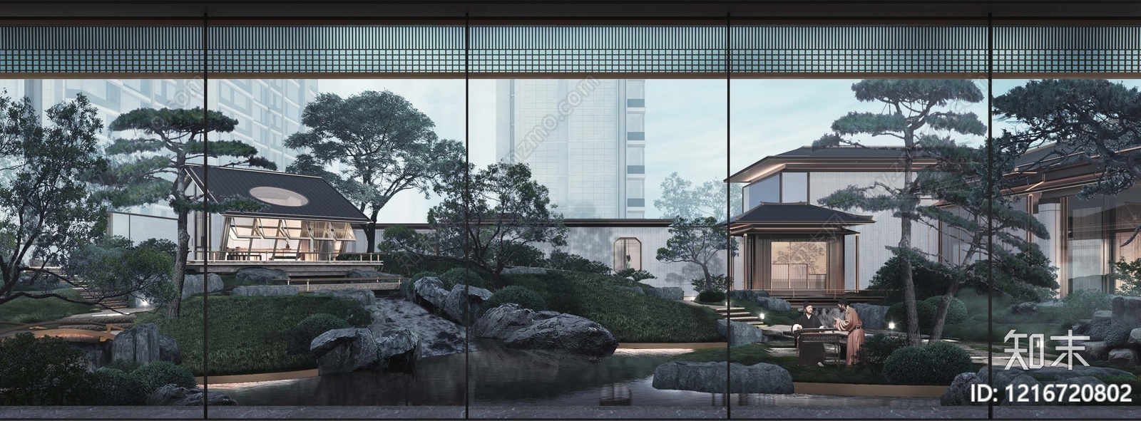 - 新中式小区景观 示范区庭院 示范区中庭 水景 山水庭院