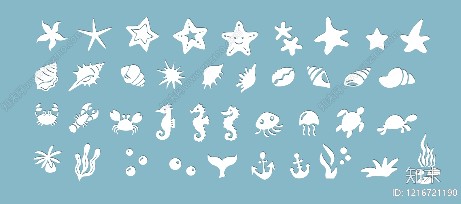 - 海洋风景观小品 海洋图案 海洋素材图案 海星海螺螃蟹图案 海马水母乌龟图案 海草图案