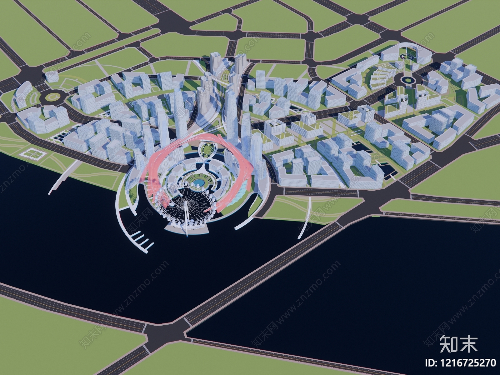 现代主义鸟瞰规划 沿海城市设计 超高层建筑 高层办公楼 高层酒店 商业综合体