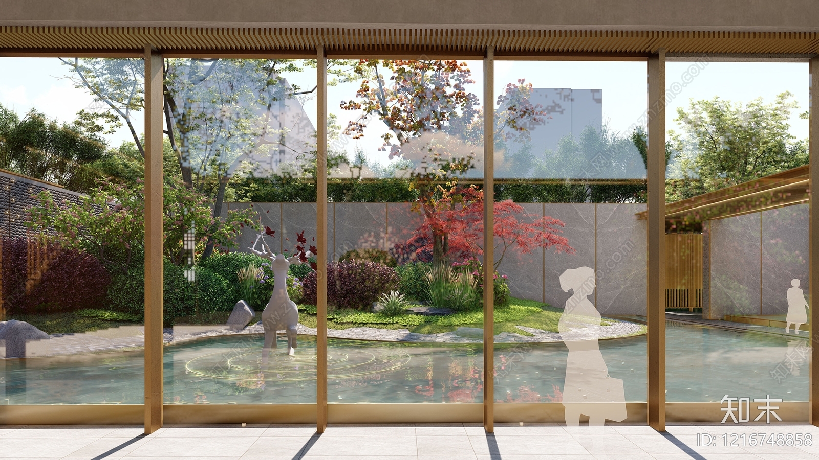 - 新中式景观别墅庭院 新中式中庭景观 日式禅意温泉酒店 禅意茶吧下沉卡座 异形亭子跌水泡池 曲线景观中心泳池