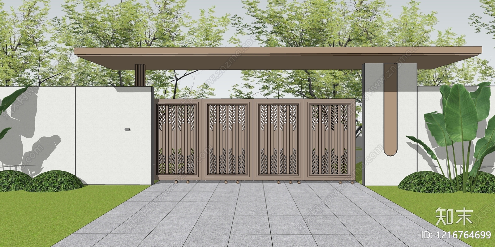- 现代简约入口大门 现代大门 庭院大门 景观大门