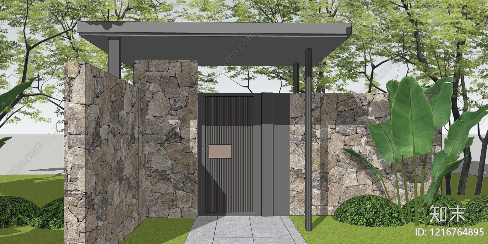 - 现代简约入口大门 现代大门 庭院大门 景观大门