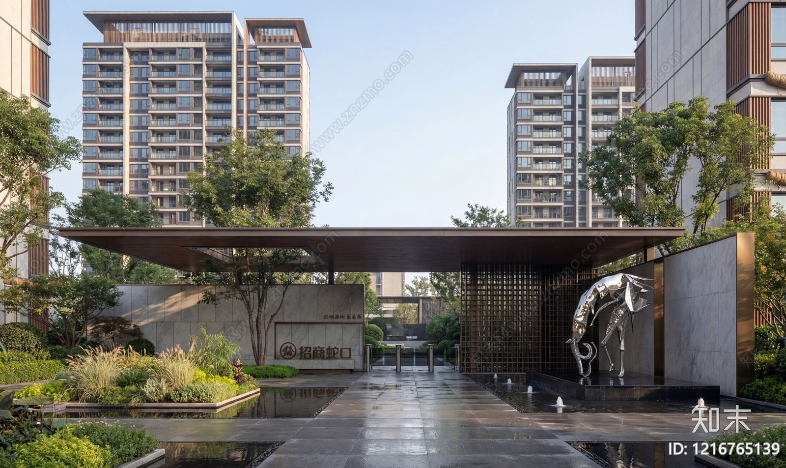 - 现代极简入口大门 住宅景观 住宅弧形景墙 住宅水景 住宅跌水景观 住宅地形景观
