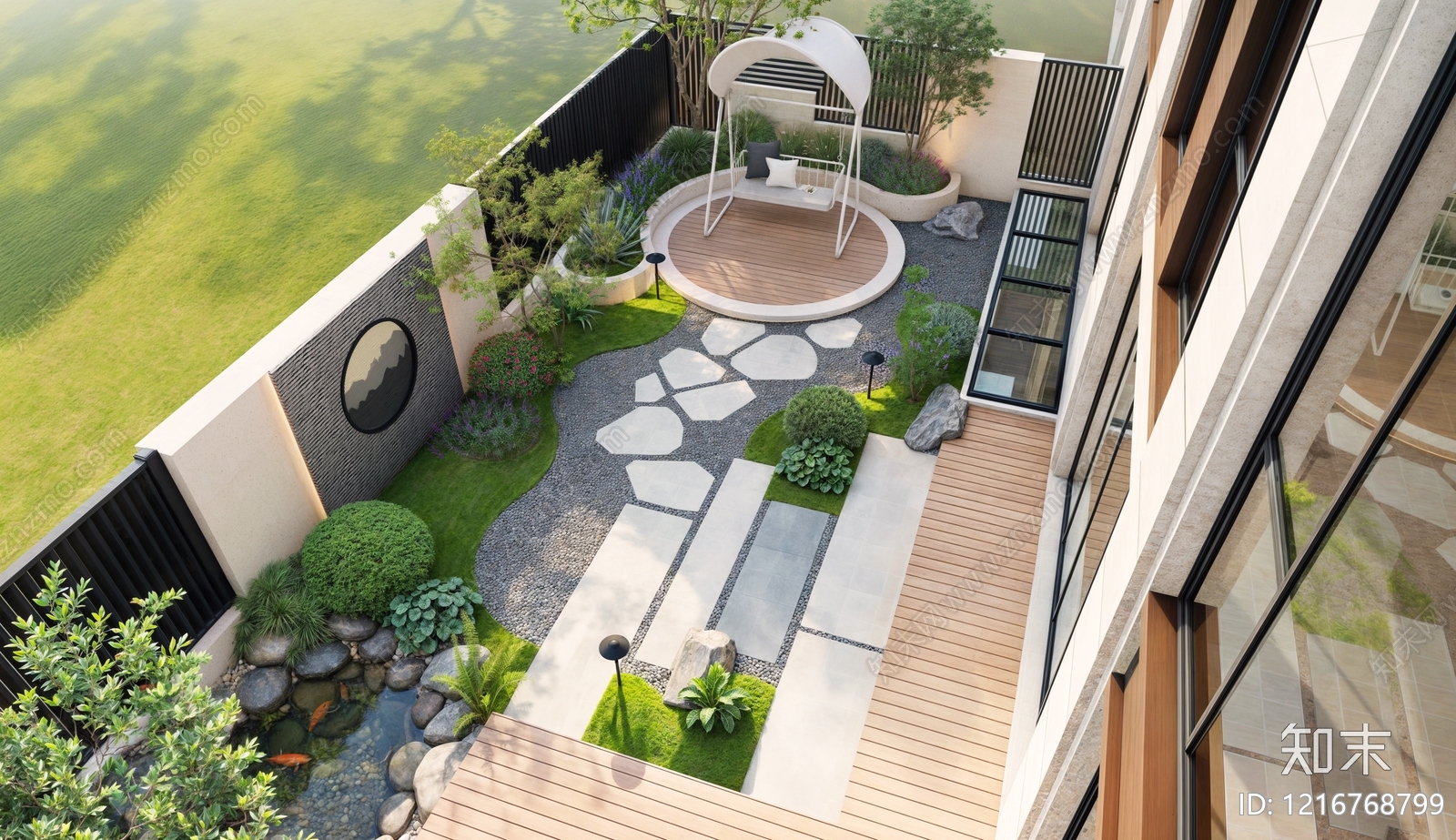 - 新中式别墅庭院 新中式庭院 休息庭院 景观庭院 别墅庭院