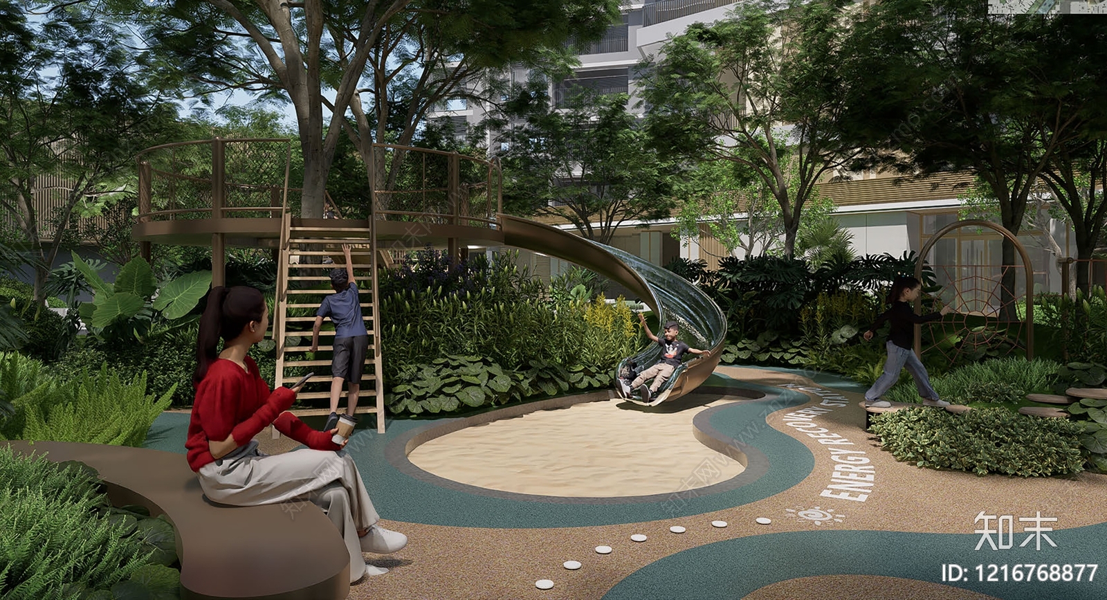 - 现代自然风儿童游乐空间 现代儿童游乐空间 滑梯 秋千 沙池