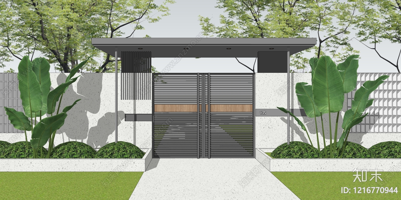 - 现代简约入口大门 现代大门 庭院大门 景观大门