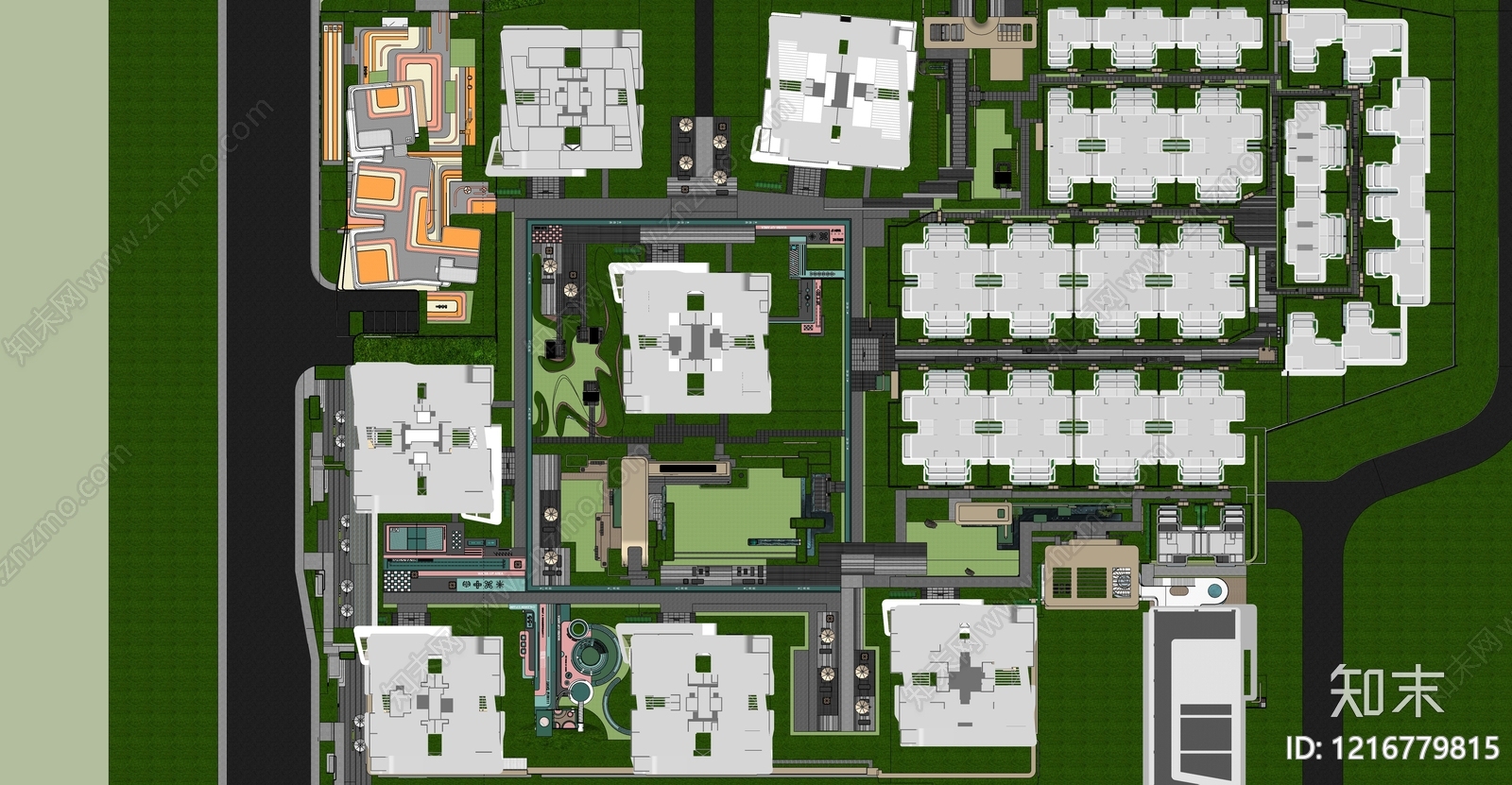 - 现代小区景观 曲线景观 大区景观中心水景 曲线飘桥栈道廊架 泳池会客厅 儿童戏水池