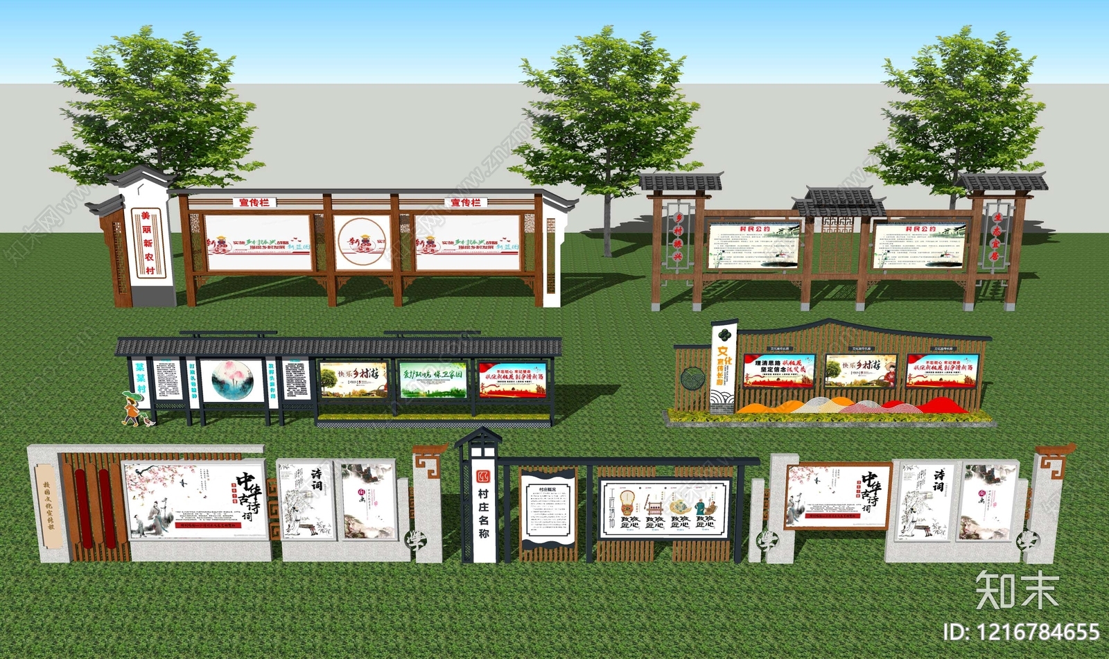 新中式其他景观小品 乡村文化景墙 文化墙宣传宣传栏