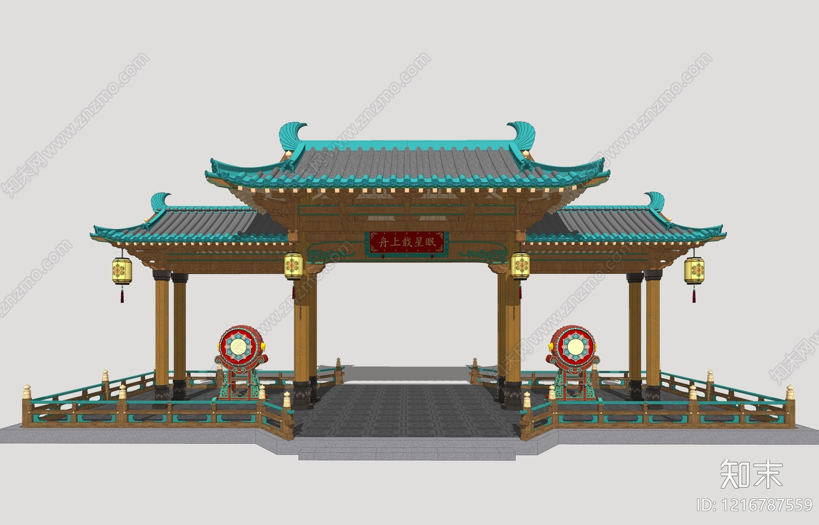 新中式入口大门 影视大门 古典大门 影视廊架 古风影视大门 园林长廊