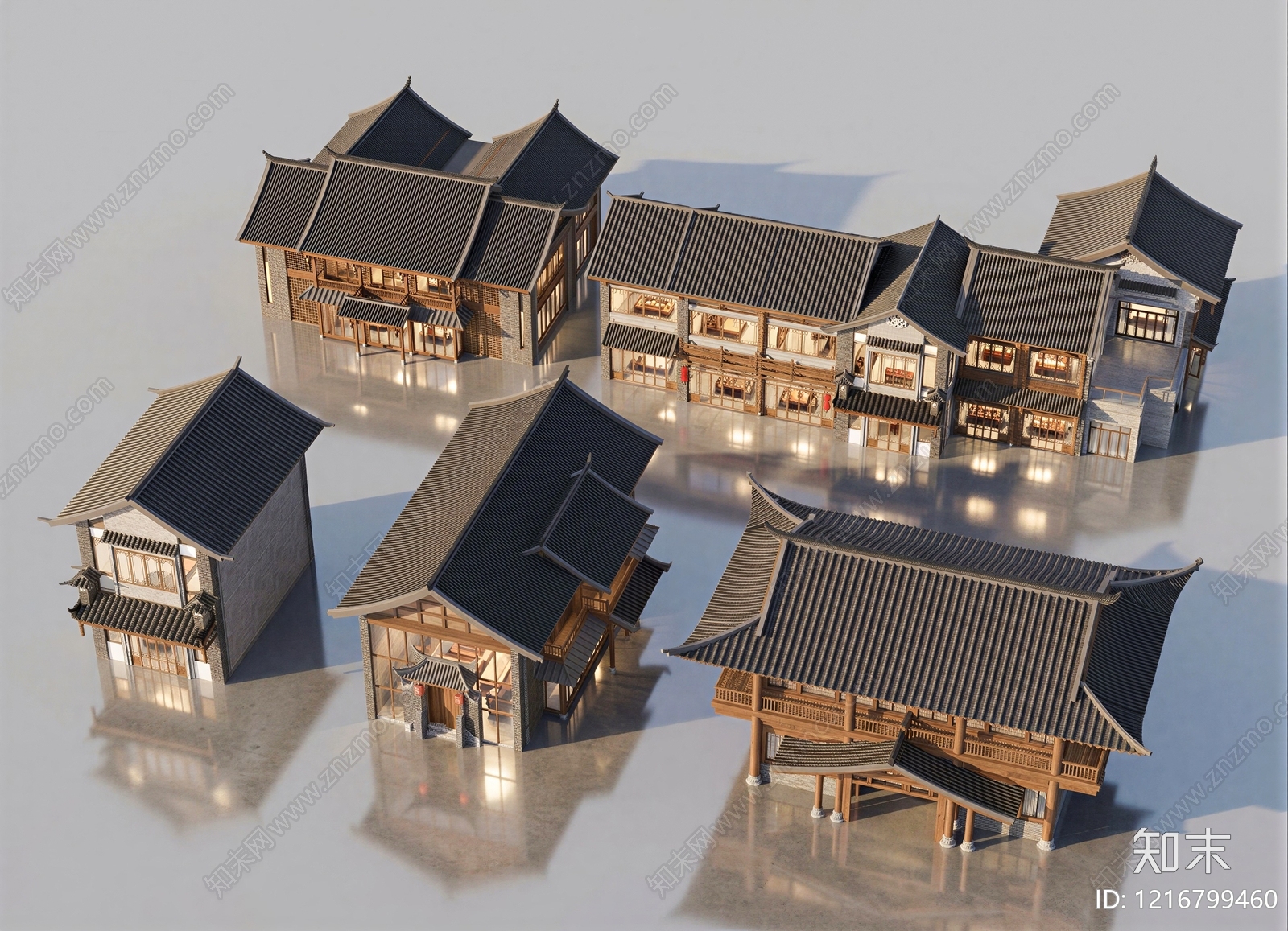 - 新中式商业街 商业街建筑 仿古商业街