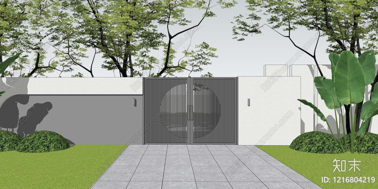 - 现代自然风入口大门 现代大门 庭院大门 景观大门