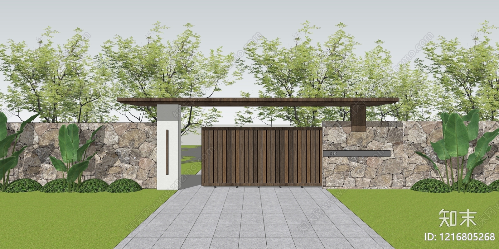 - 现代自然风入口大门 现代大门 庭院大门 景观大门